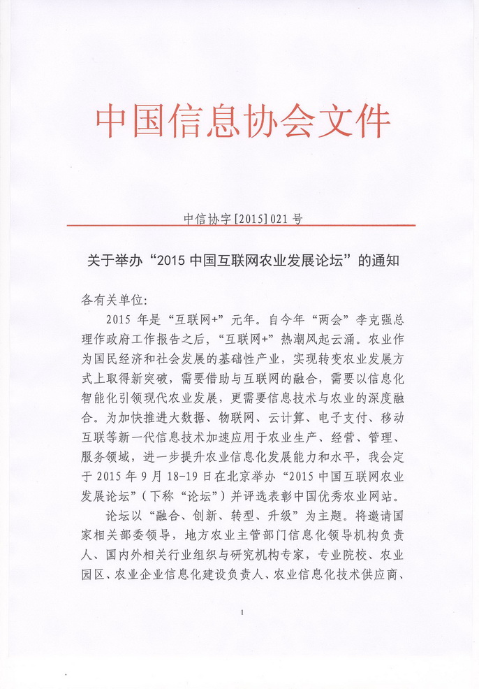 关于举办“2015年中小企业信息化优秀产品和服务论坛”的通知